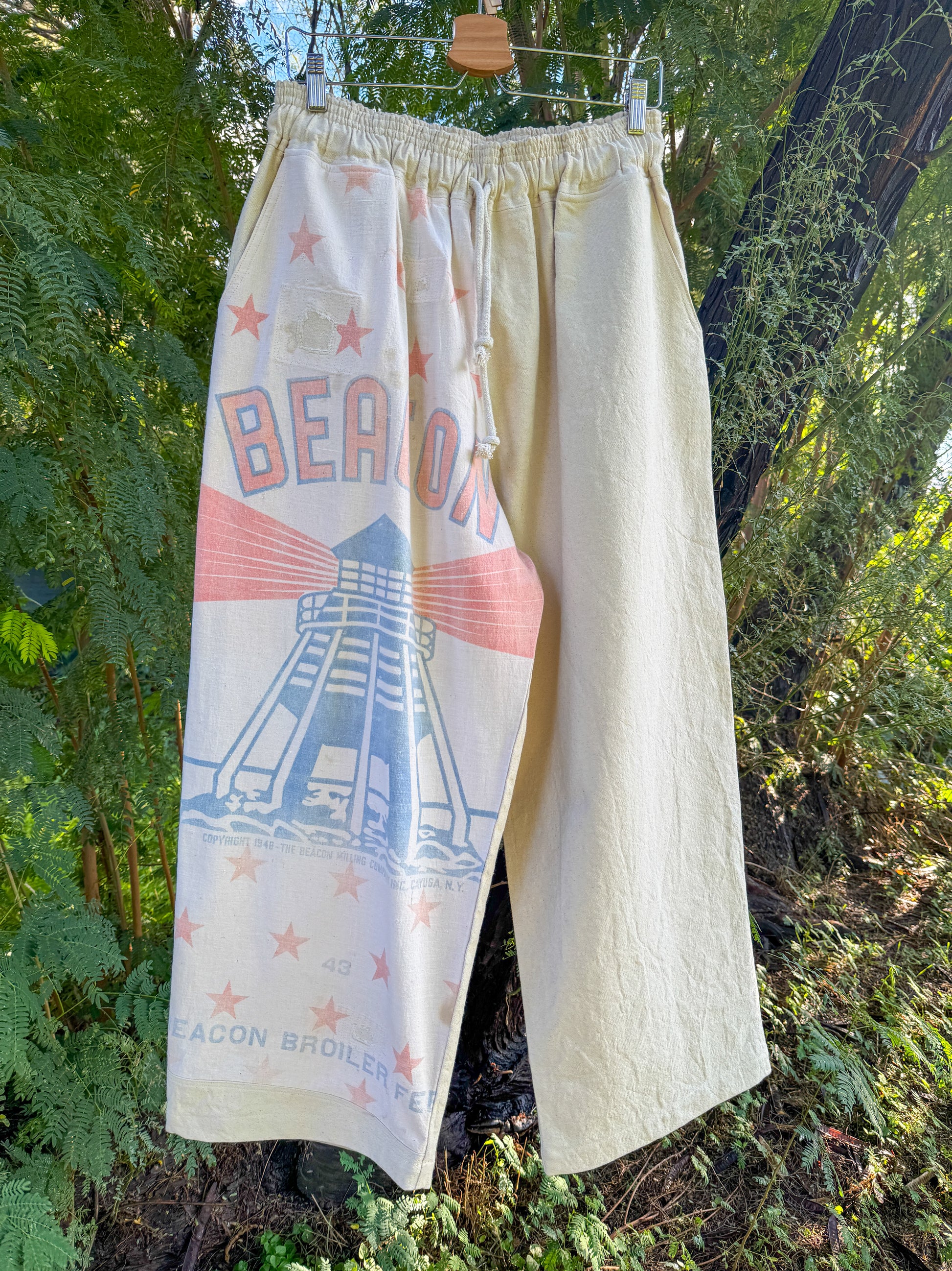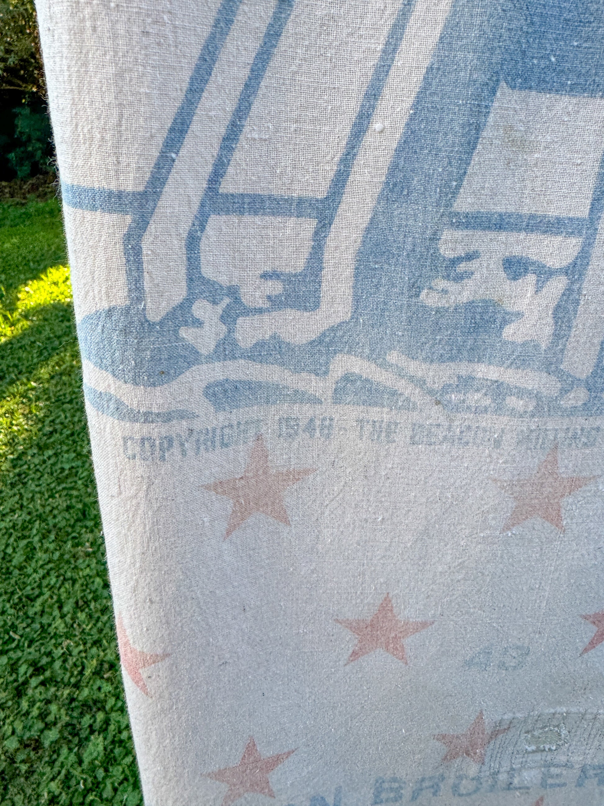 Made from a vintage feed sack and canvas. Mended with a lovely front and back pattern. From the late 1950s.