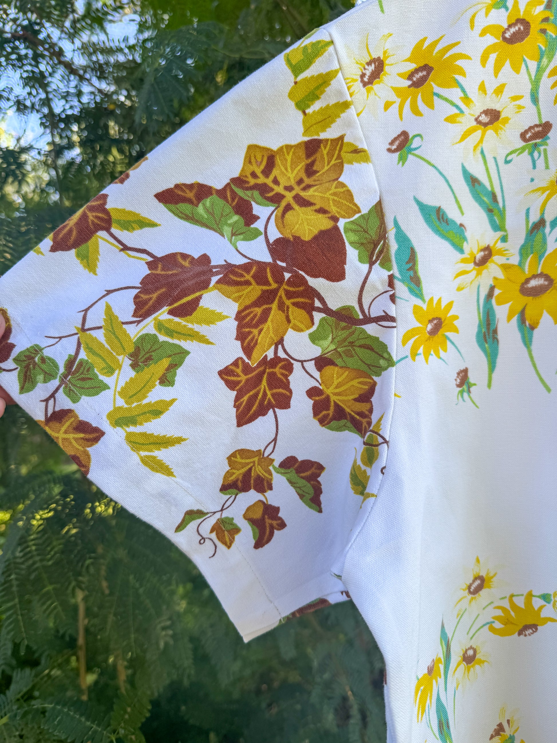 FALL FLOWERS TABLECLOTH BUTTON UP (X-LARGE)