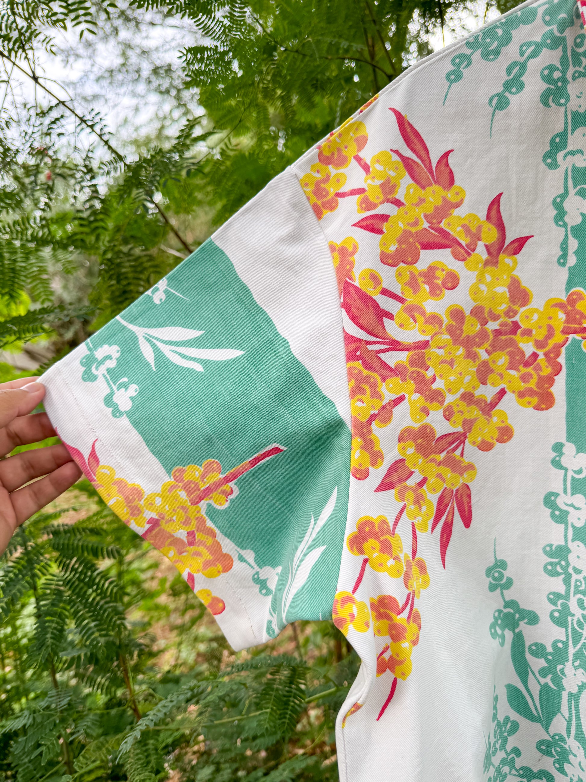 GREEN FLORAL TABLECLOTH BUTTON UP (LARGE)