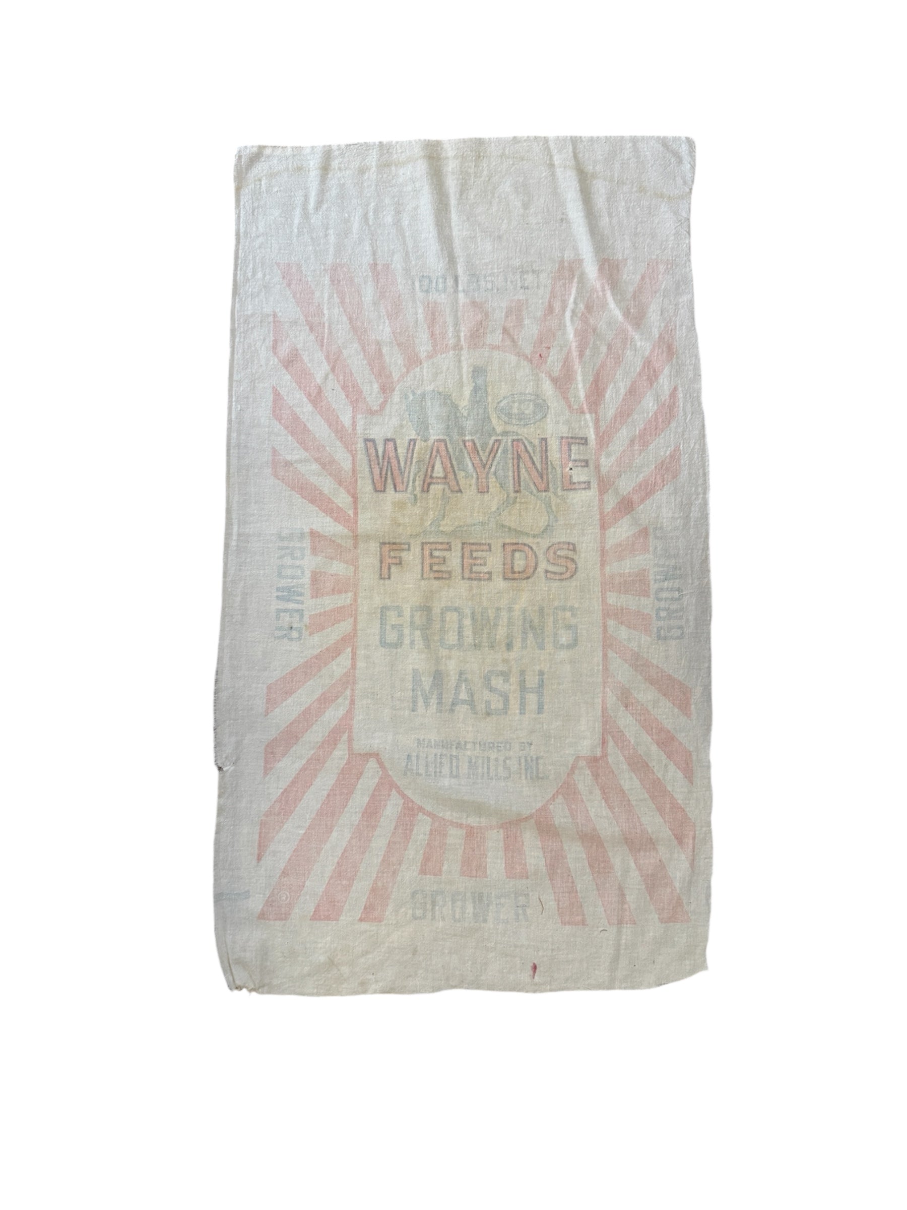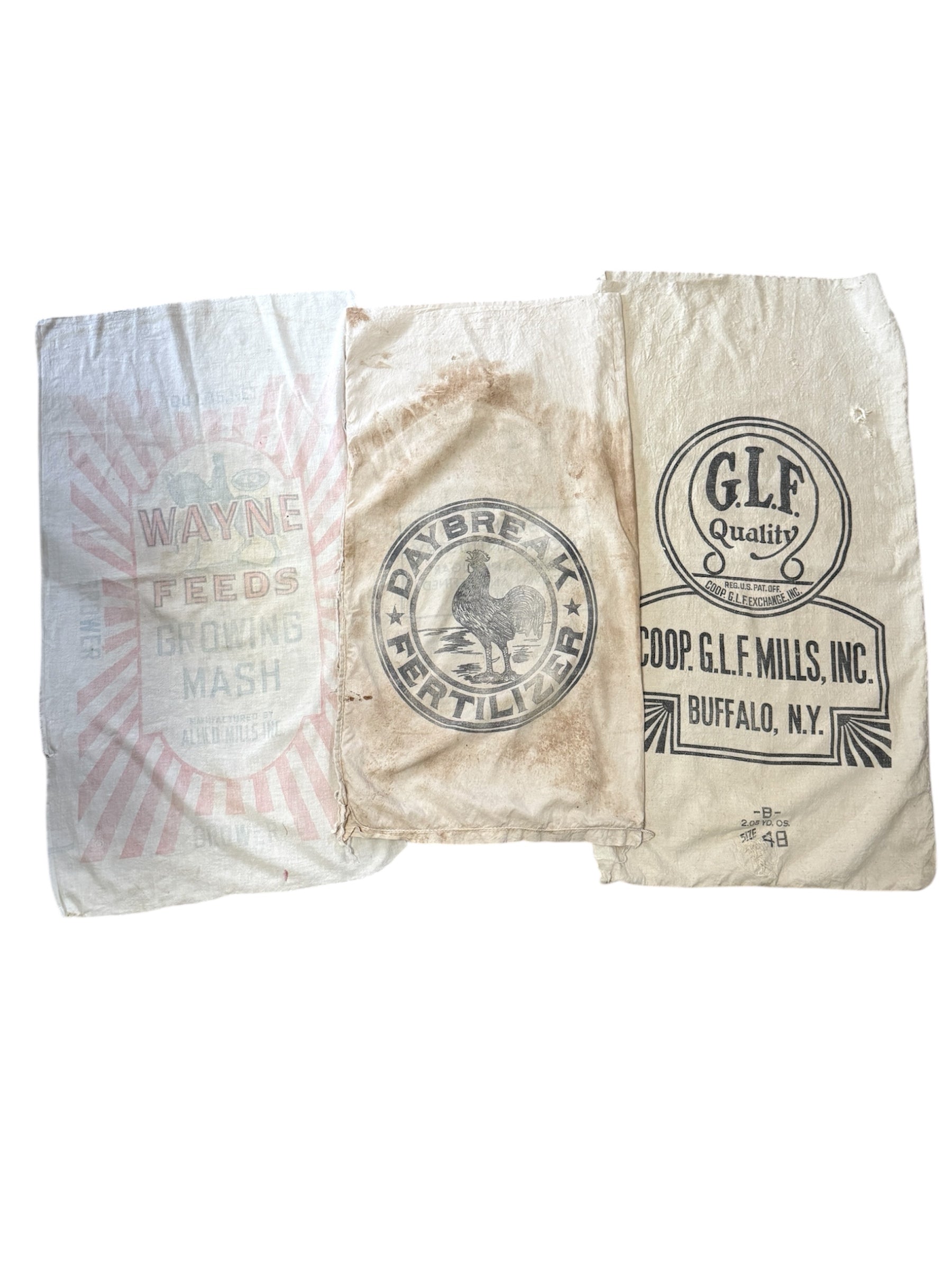 *feed sacks have been washed and sanitized. Due to the nature of the product, mending spots and staining may be present on the item. Please be aware of this aspect when ordering.