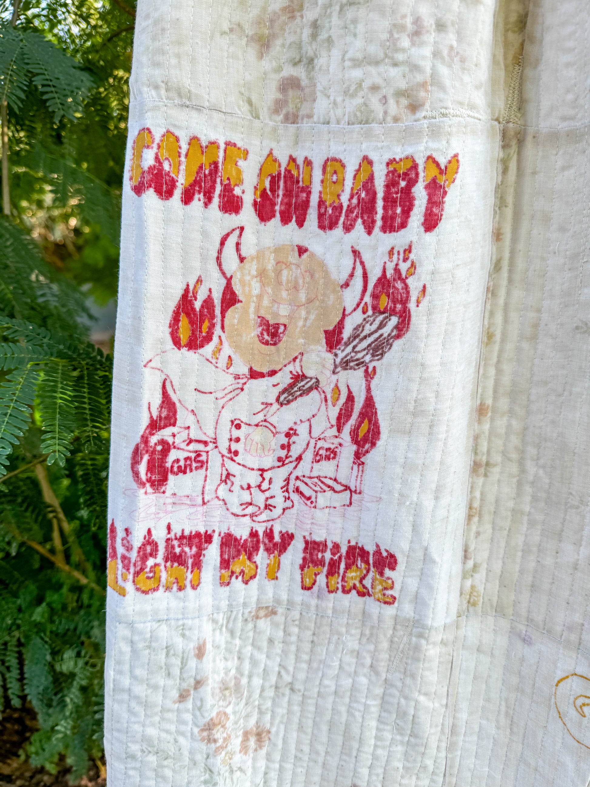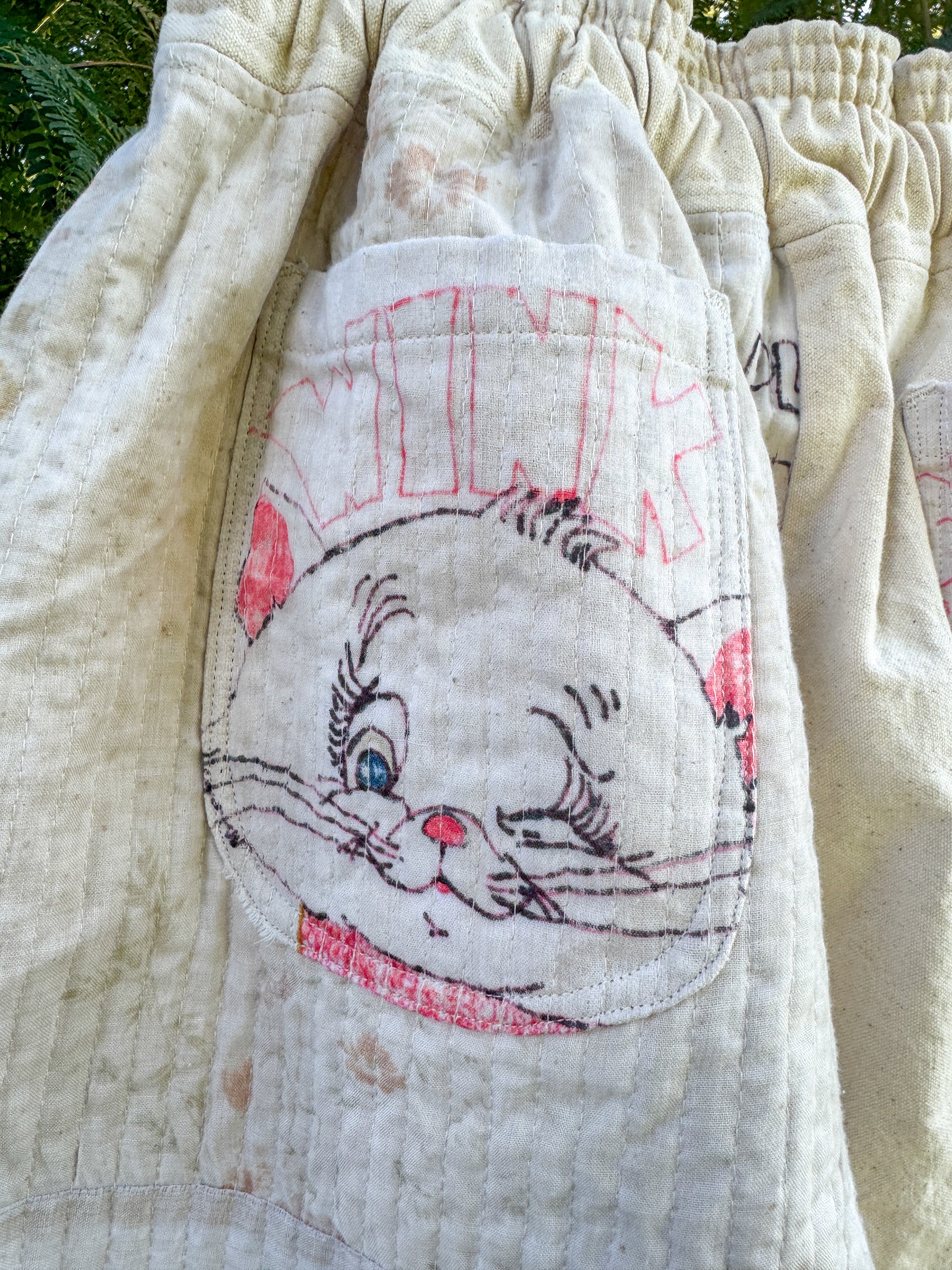 Made from a vintage hand drawn quilt topper. Channel stitched on to canvas. Drawings are unfinished and still hold so much character. Truly one of a kind!